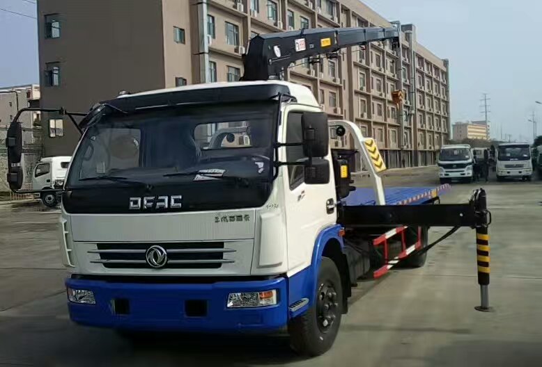 ◆東風(fēng)多利卡平板帶吊機(jī)一拖二清障車: