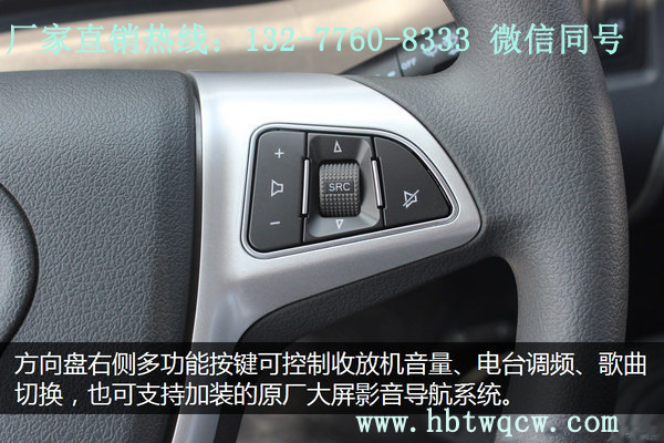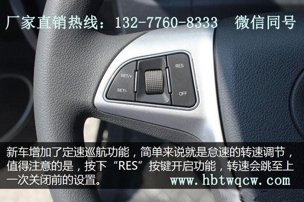 整體風(fēng)格趨向于乘用車的設(shè)計(jì),質(zhì)感提升,用戶好評度更高,并且可后期加裝支持方向盤多功能按鍵操作的原廠大屏影音導(dǎo)航系統(tǒng)。另外可以看到,該國五新車增配了定速巡航功能,按鍵設(shè)置在方向盤左側(cè),操作簡便。